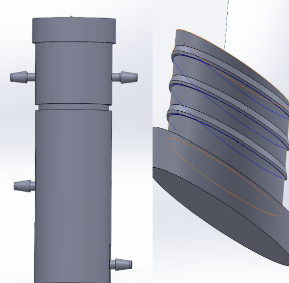 Created redesign CAD of air reservoir in solidworks incorporating more inlets to allow different gases to interact with fluid.